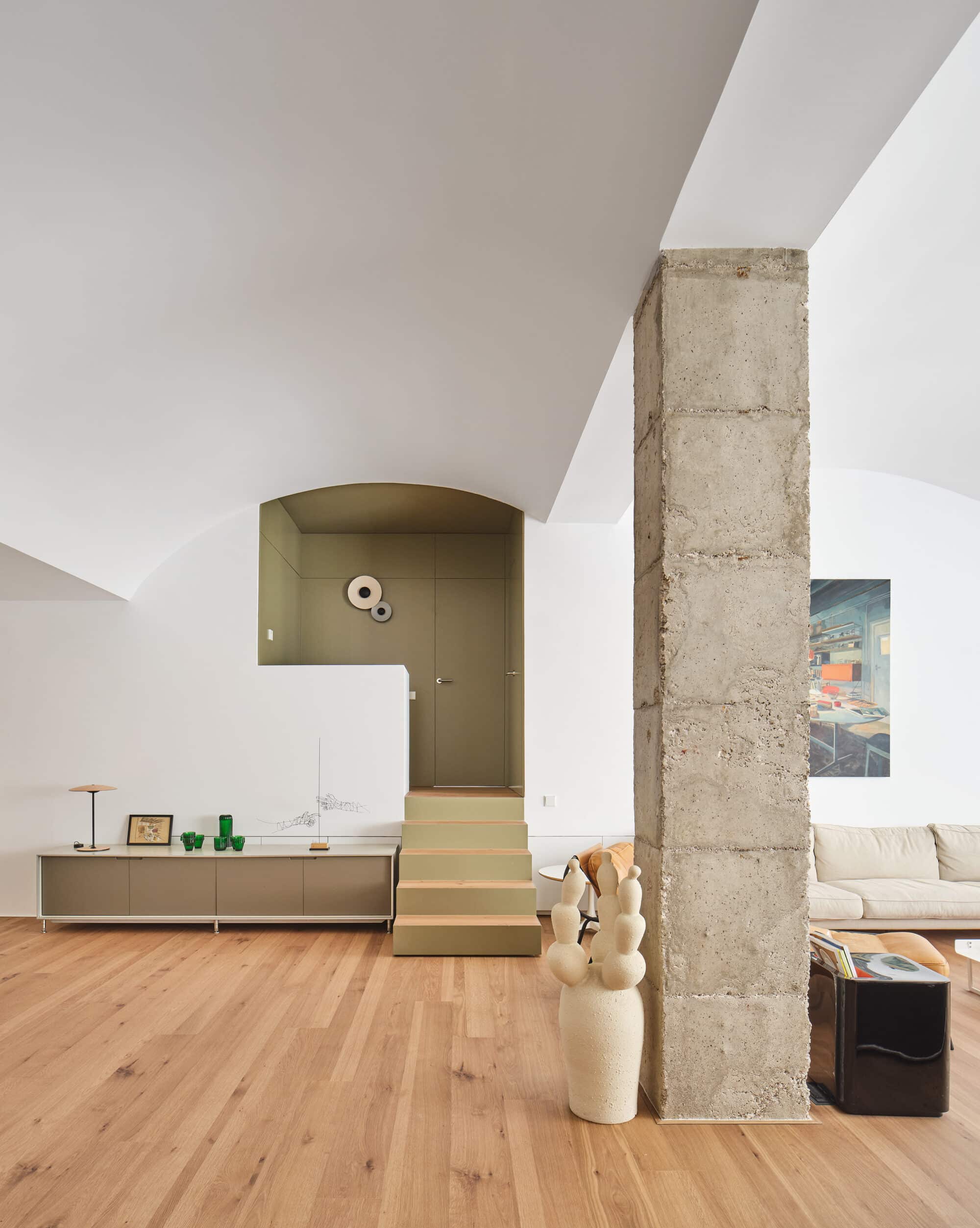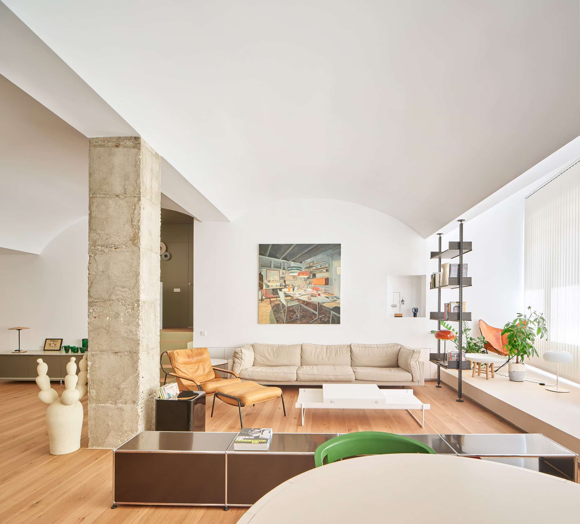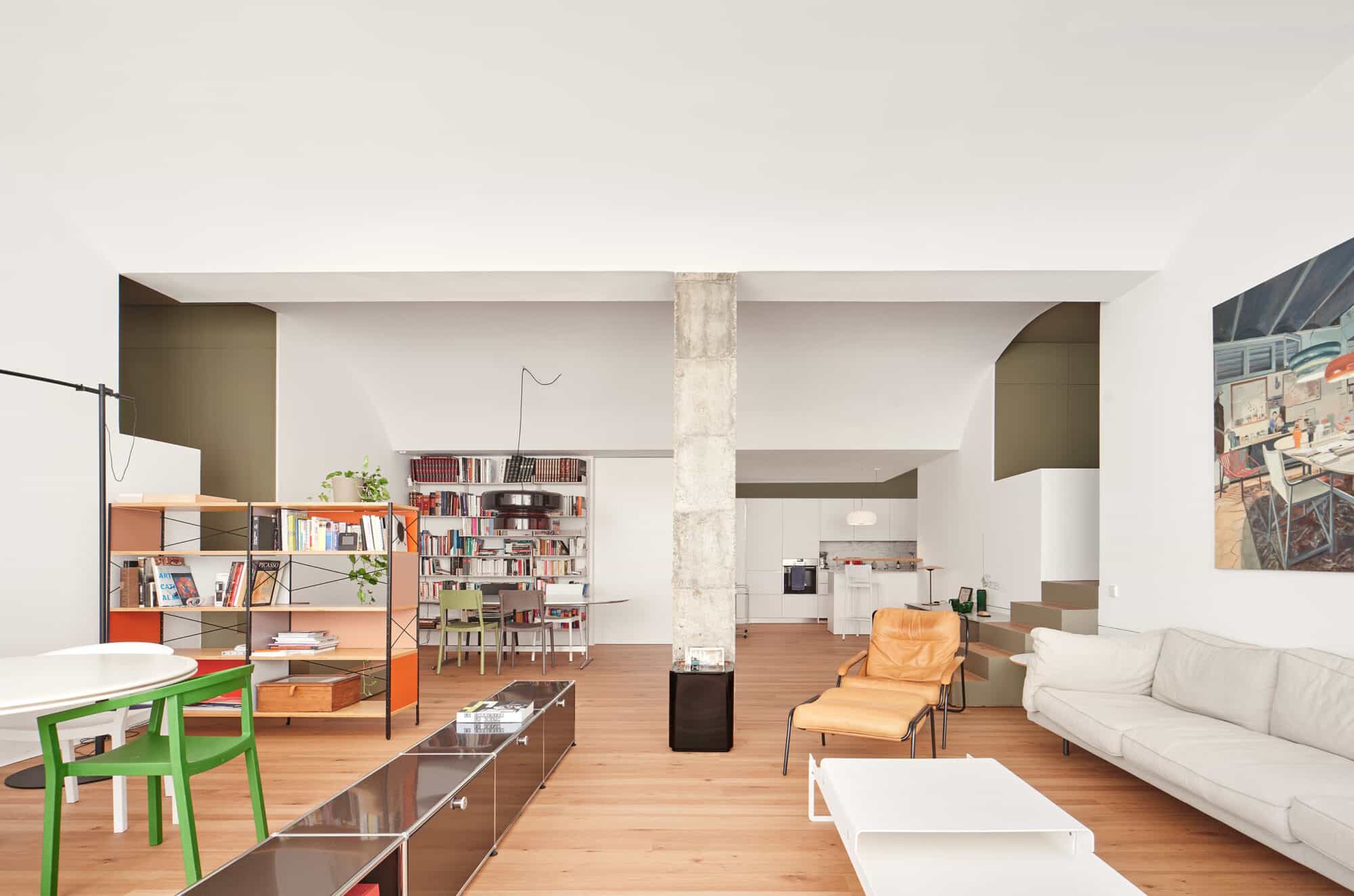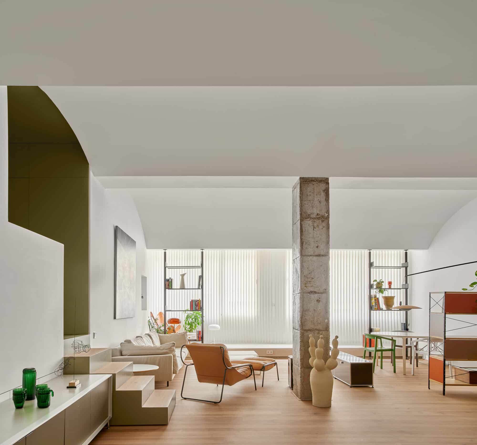 Mit dem Ziel, zwei separate Wohneinheiten zu einer einheitlichen Wohnung zu verbinden, legt der Ansatz von twobo arquitectura einen besonderen Fokus auf den daraus resultierenden zentralen Raum mit kohärenten Elementen. Der Einsatz des Parklex Prodema Innenbodens ist entscheidend für die Erreichung dieser Kontinuität: Seine Wasserbeständigkeit ermöglicht den Übergang von der offenen Küche in den Wohnbereich und bewahrt gleichzeitig die Wärme des natürlichen Holzes. Die ausgezeichnete Haltbarkeit des Bodens gegenüber Abnutzung gewährleistet die Langlebigkeit des Holzes ohne Wartungsbedarf.
