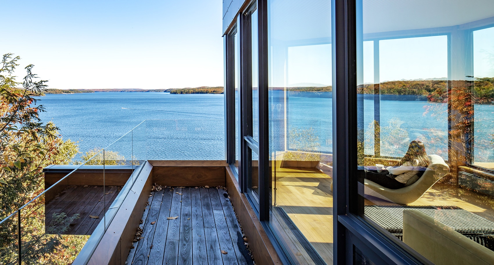 Immerso nella foresta che domina il lago di Baie in Ontario, Canada, si trova questo grande spazio vitale, che copre 1.000 piedi quadrati di superficie e altri 3.000 piedi quadrati di terrazza sul tetto. La località è Baysville, uno dei tanti insediamenti sulle rive del lago.
